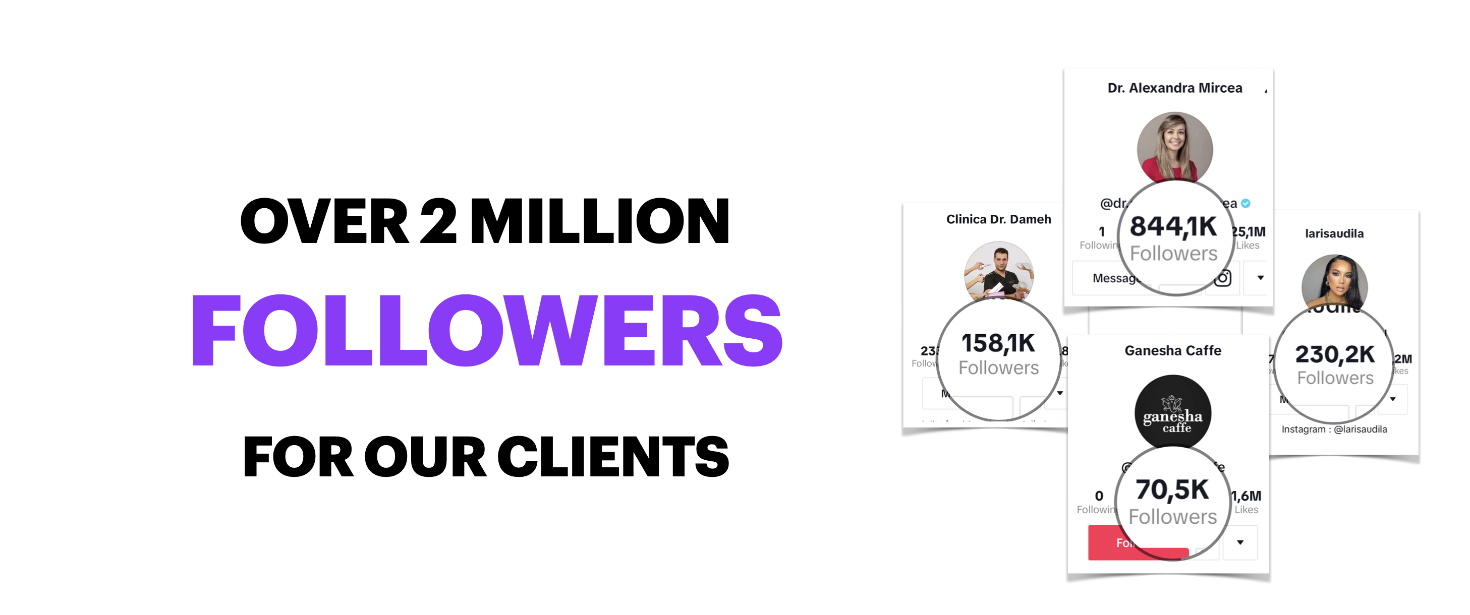 Iți oferim o metoda verificată și testată, care a adus rezultate organice uimitoare pentru clienții noștri. Ne ocupăm de strategia contului, filmare, editare, postare, administrare cont, colaborări cu influenceri și rularea de ad-uri pe TikTok